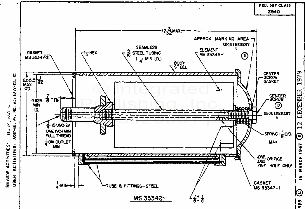 MS35342 Filter, Fluid, Pressure, Oil, Heavy Duty, By-Pass Type Senior Size (Base Mounted) (S/S By F-F-351/2)